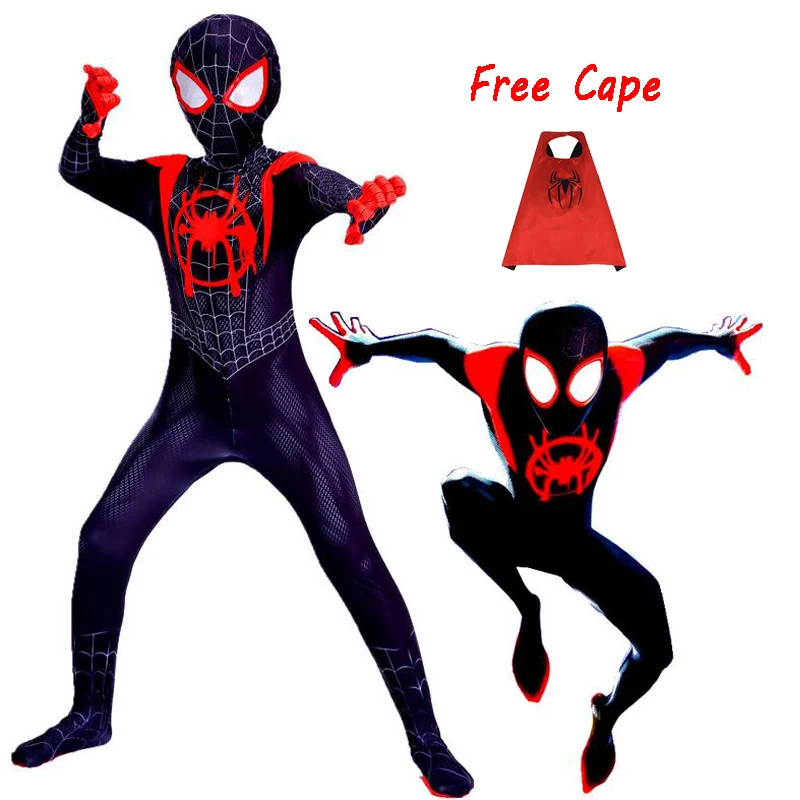 ✅ Новинка 2018 года дети Человек-паук в Spider-Verse Майлз Моралес костюм зентай для косплея Человек-паук узор Боди Комбинезоны