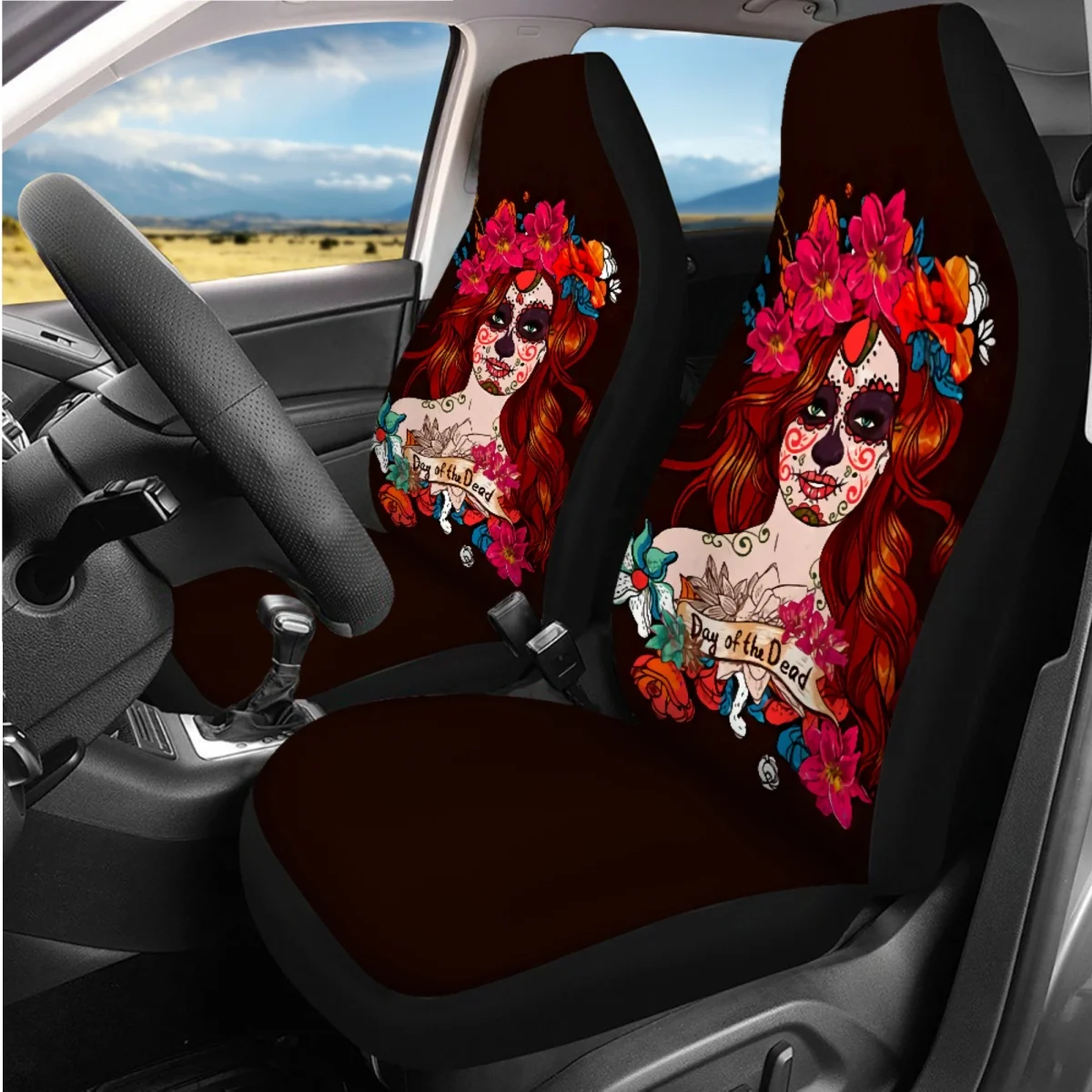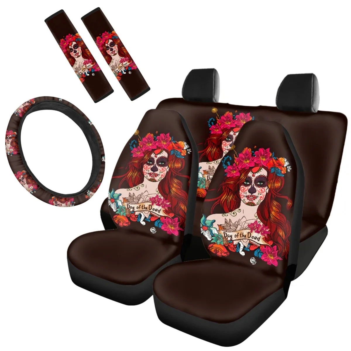 QryfwpDMHere you can buy Halloween Decoration Zombie Gothic Girl Flower Pattern 7Pcs Vehicle Clean Protector SeatBelt Steering Wheel Covers Custom Image with free delivery to your post office.