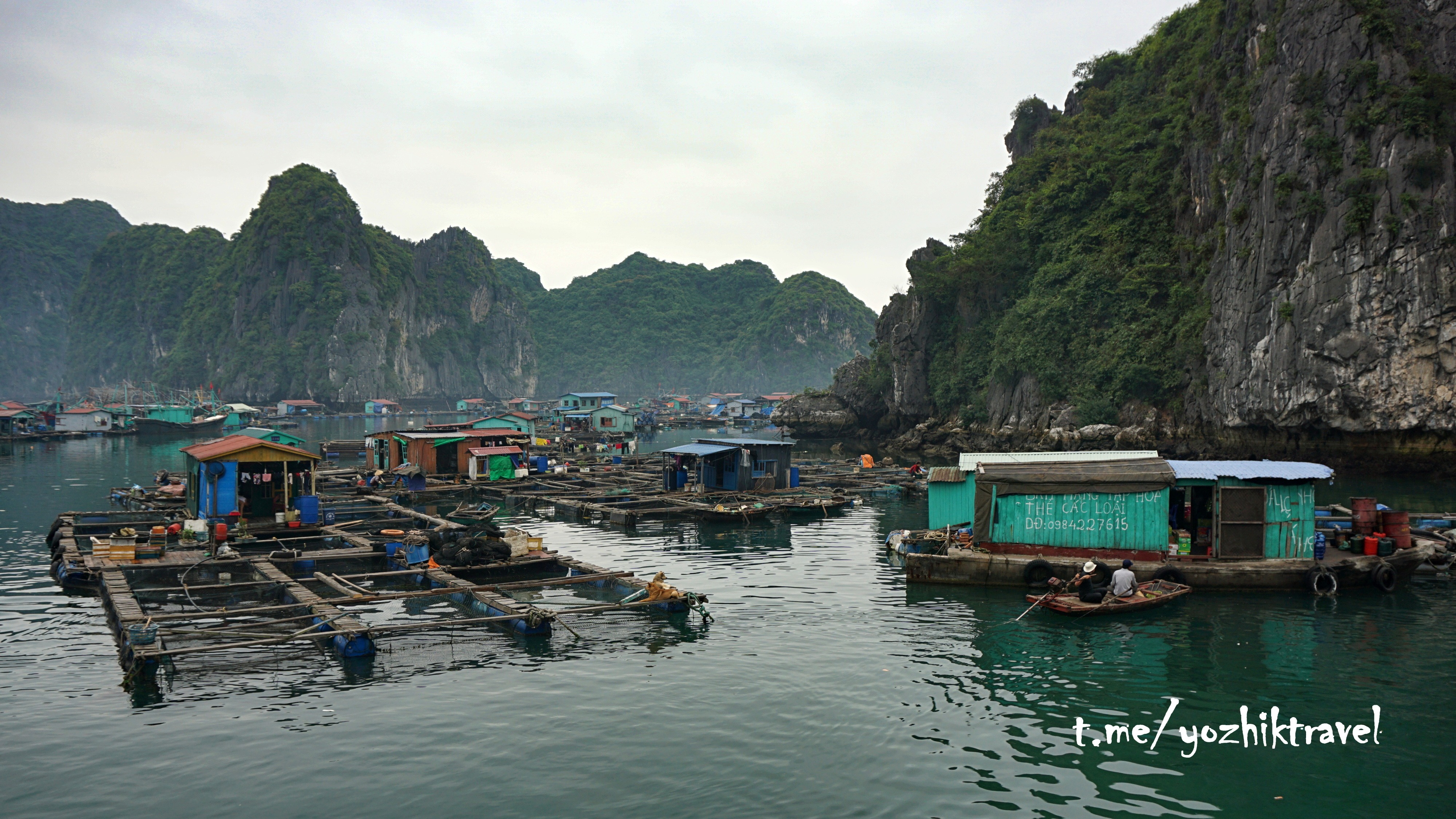 Первая локация на нашем пути - это рыбацкая деревня. Множество плотиков, домиков с примыкающими к ним плантациями морских культур.