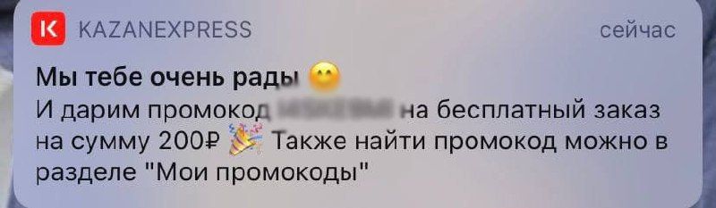 3. Ждём от 1 до 5 мин. и получаем уведомление с промокодом;