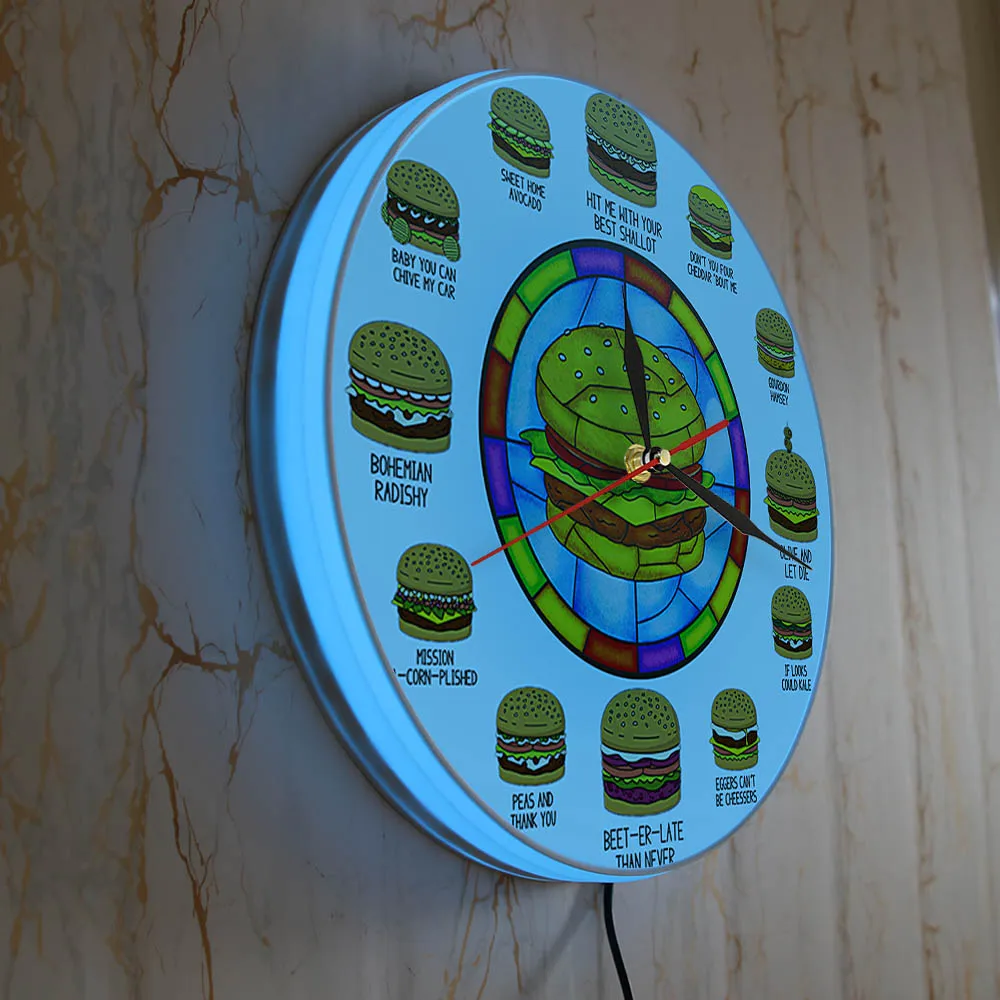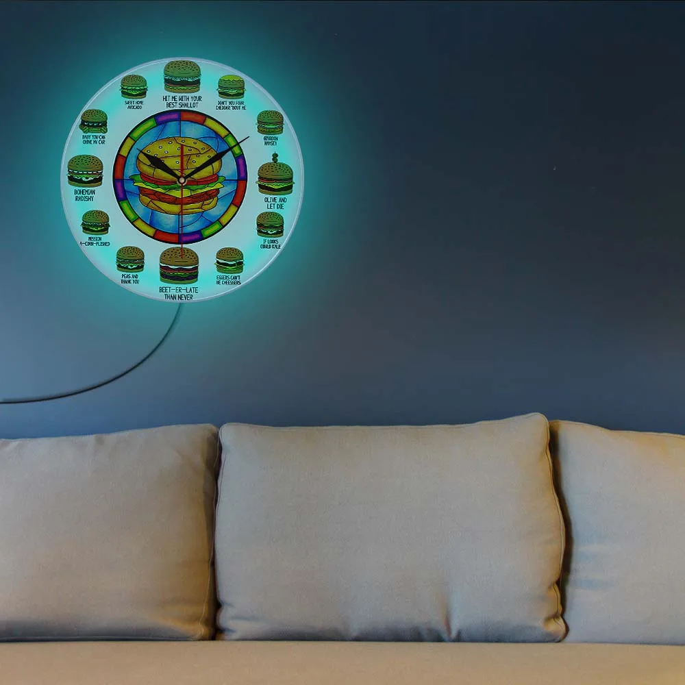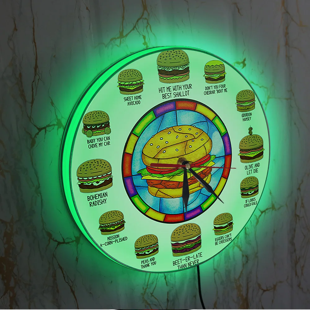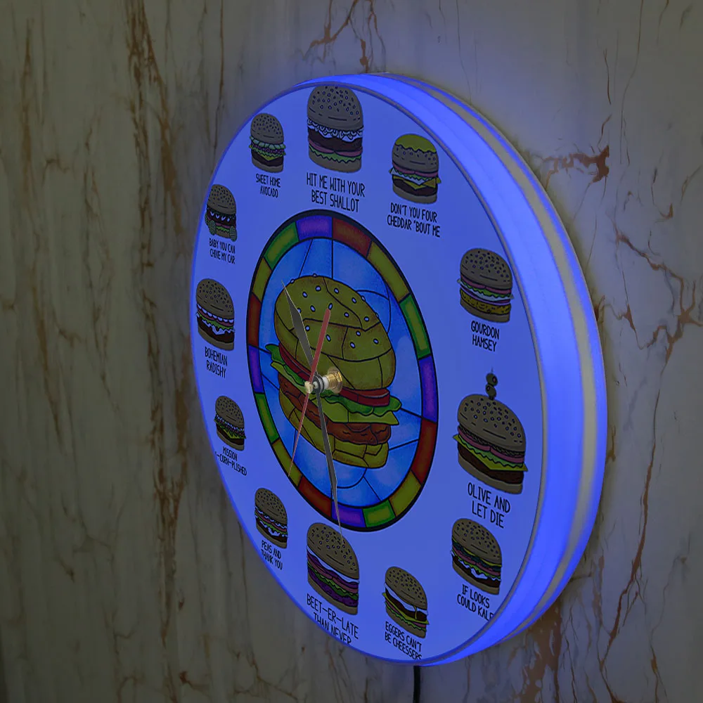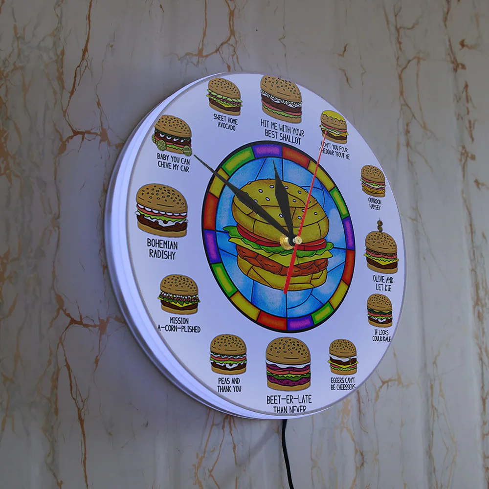 JVRMGoREYnHere you can buy Hamburger Puns LED Lighted Wall Clock For Kitchen Fast Food Burger Shop Decor Burger Nightlight Clock Illuminated Display Sign with free delivery to your post office.