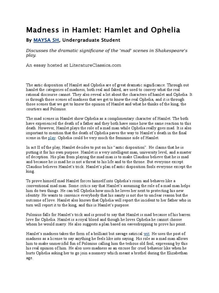Hamlet Madness Essay | Bartleby
