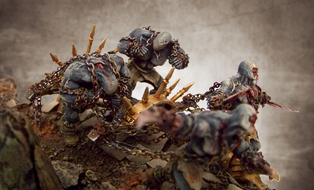 Festgebunden und zum Spritzen gebracht