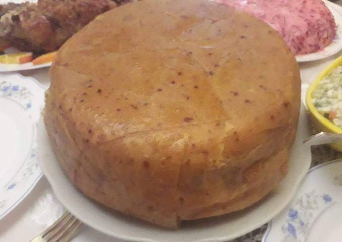Рецепт «Шах плов-королевский плов»: Для начала готовим тесто в котором будет находится плов . Очень красиво, только в Азербайджанской кухни, в пловы никогда не использовали морковь . Обожаю плов! Непременно опробую и Ваш рецепт,но количество шафрана всё же . . .