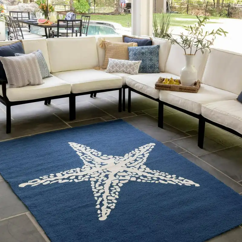 "Hand Hooked Indoor/Outdoor Area Rug, 6', Navy" * Buy Now With Free Shipping Just For $92