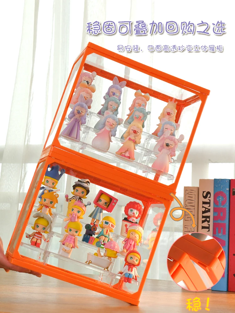 Hand-Made Storage Display Rack Glass Cover Dust-Proof Cabinet Doll with Ladder Display Box - Купить с бесплатной доставкой