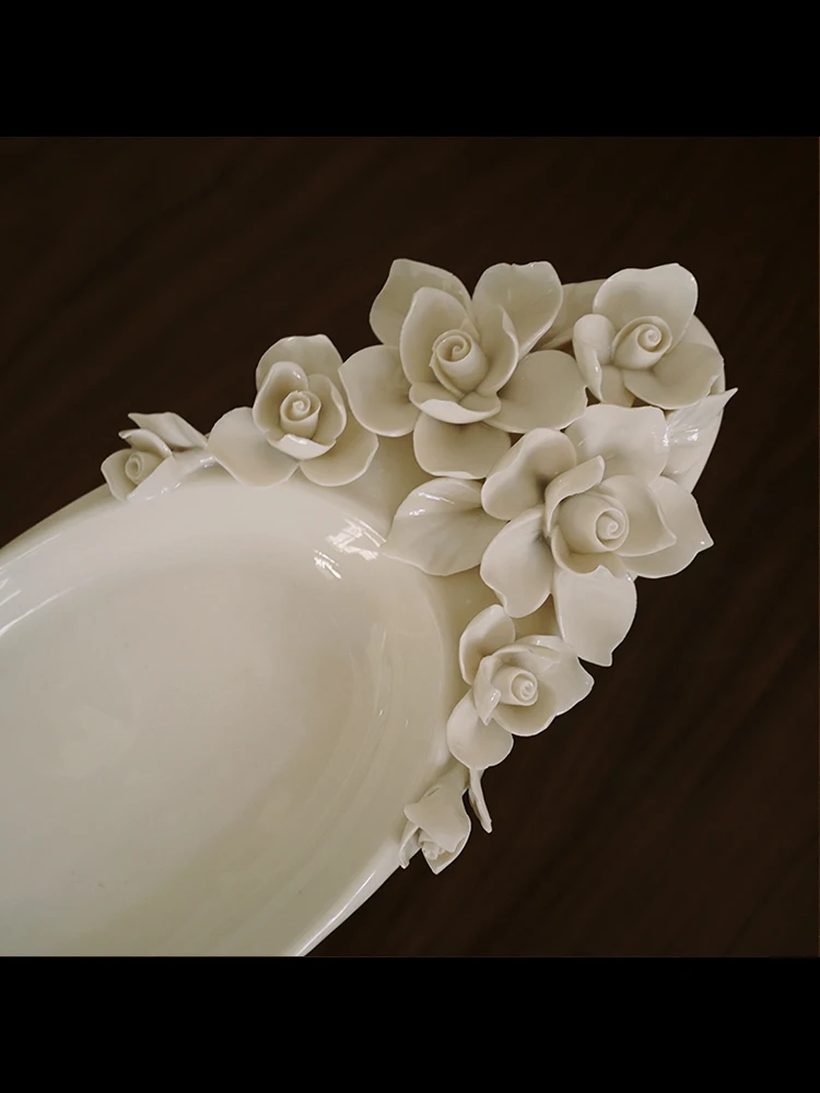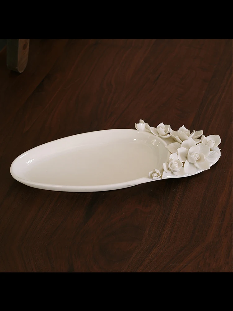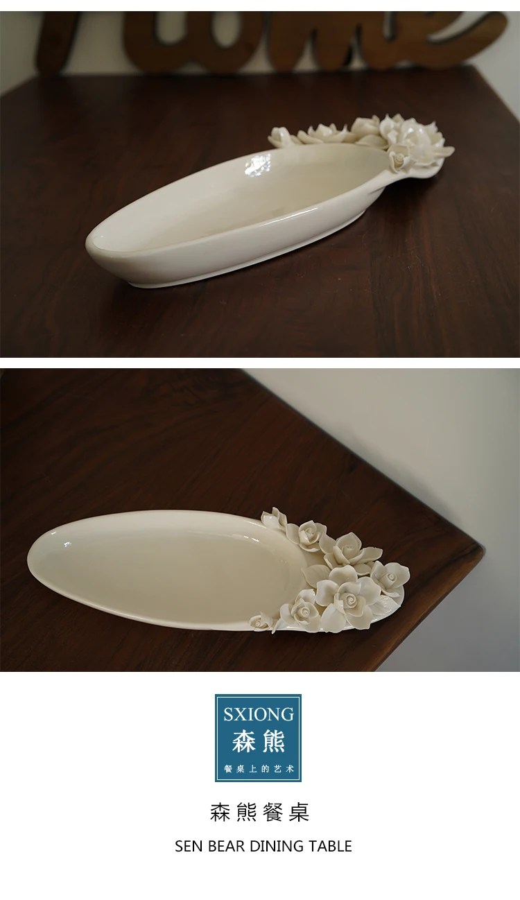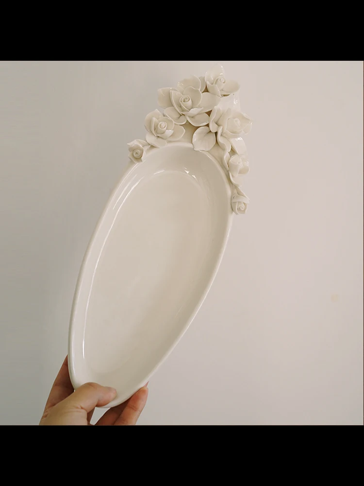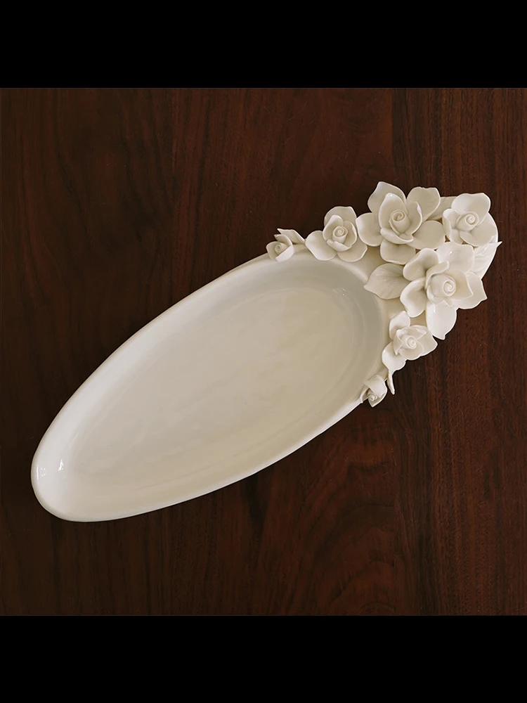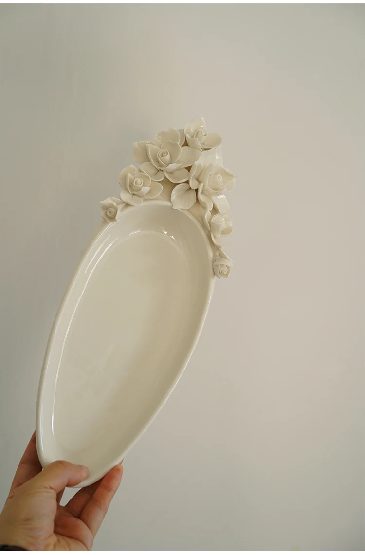 BaoqZNNitHere you can buy Hand-Pinched Flower Creative Three-Dimensional Flower Ceramic Oval Long and Deep Plate with free delivery to your post office.