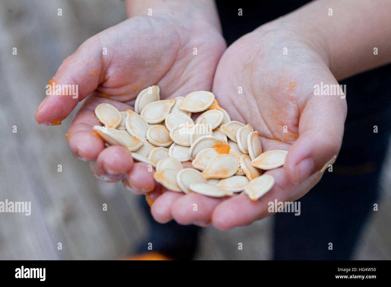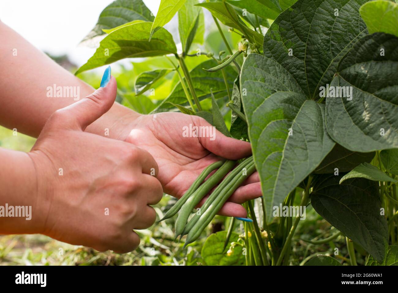 Hand shoving butter bean