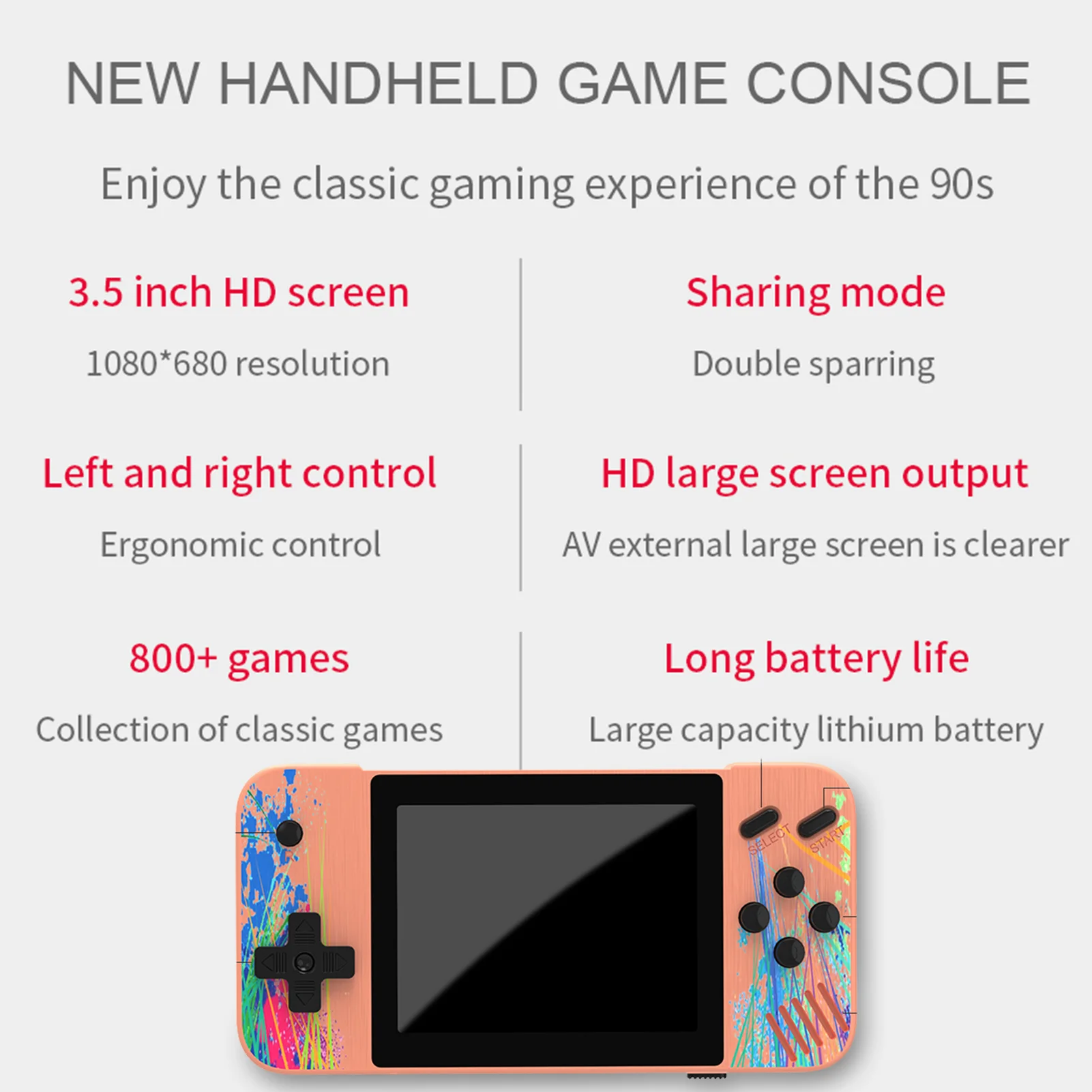 IZVGkZLCДолго искали Handheld Game Player Portable 3.5 Inch HD Screen Retro Video Gaming Console Support TV Connection Built-in 800 Games Console, но не могли найти? Предоставляем вашему вниманию Handheld Game Player Portable 3.5 Inch HD Screen Retro Video Gaming Console Support TV Connection Built-in 800 Games Console по лучшей цене на рынке!