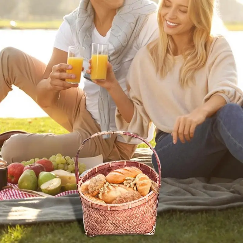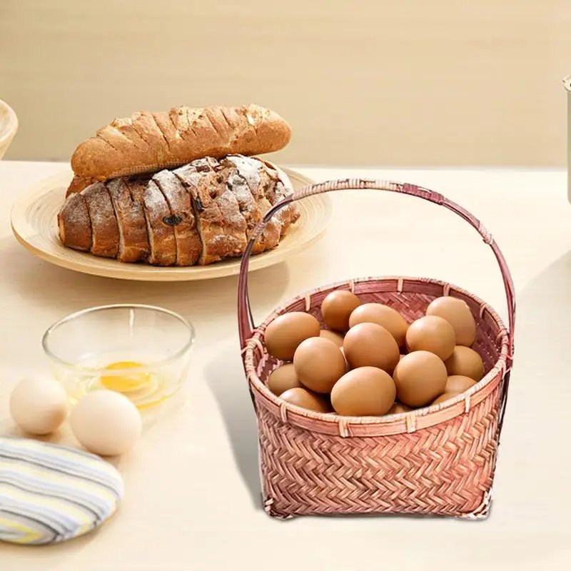 yhxfgGWPSHere you can buy Handmade Bamboo Fruit Basket Rustic Handheld Woven Food Serving Storage Container Decorative Round Rattan Bread Tray Snack Bowl with free delivery to your post office.