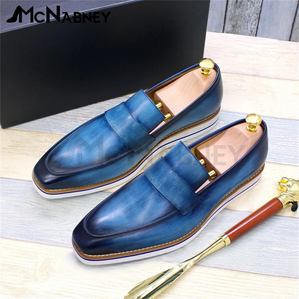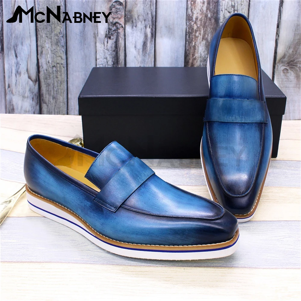 PivnqIUgJДолго искали Handmade Leather Loafers Blue Slip On Comfortable Flats Gradient Color Business Casual Shoes Luxury Concise Style Shoes for Men, но не могли найти? Предоставляем вашему вниманию Handmade Leather Loafers Blue Slip On Comfortable Flats Gradient Color Business Casual Shoes Luxury Concise Style Shoes for Men по лучшей цене на рынке!