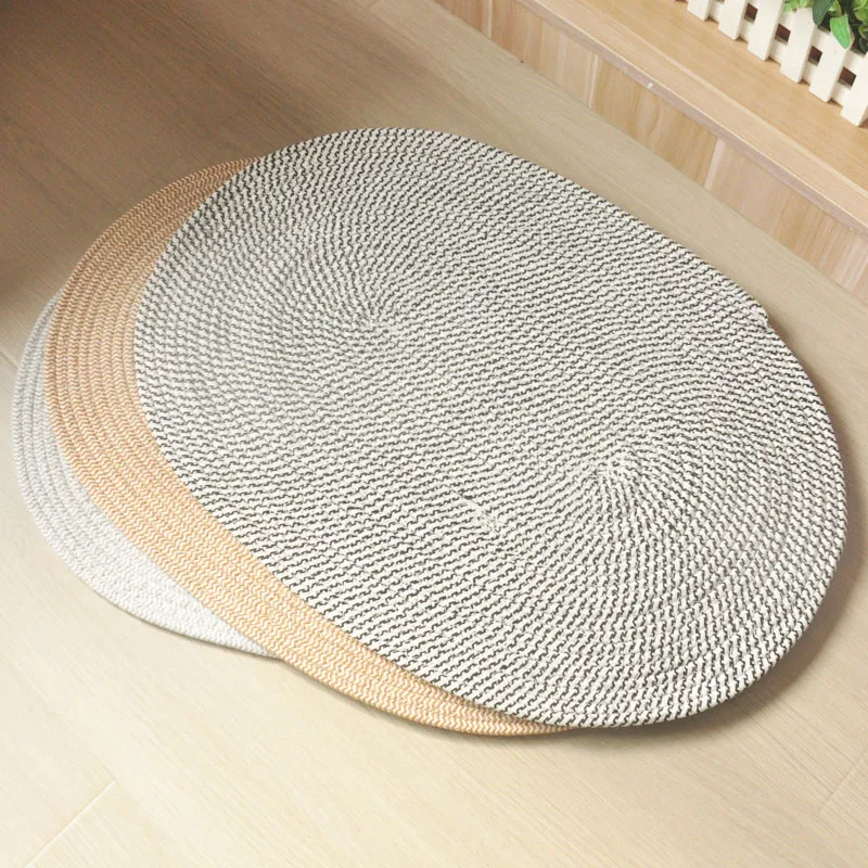 Handmade Oval Woven Rugs Vintage Home Decor Floor Mat Chic Room Table Mat Bedside Area Rug Rattan Carpet for Bedroom Living Room - Купить с бесплатной доставкой