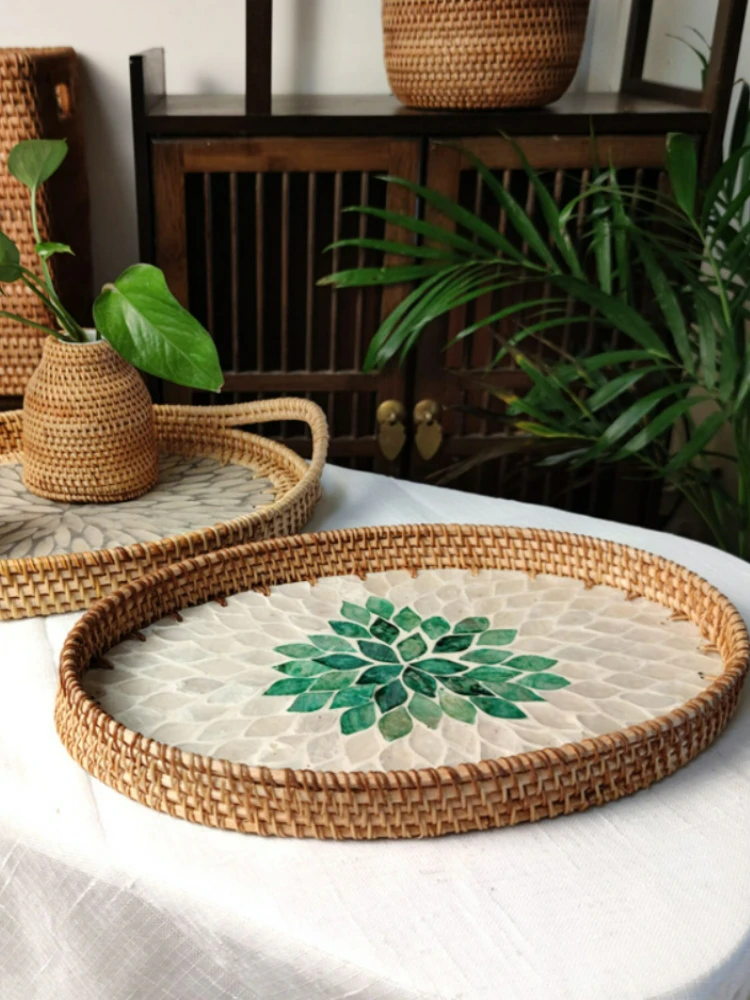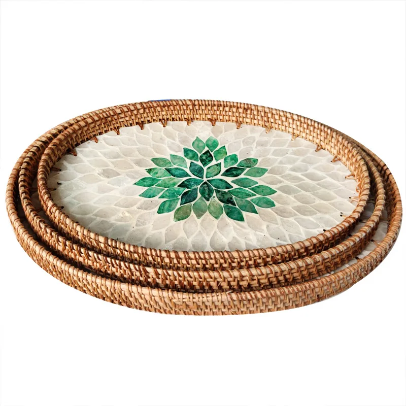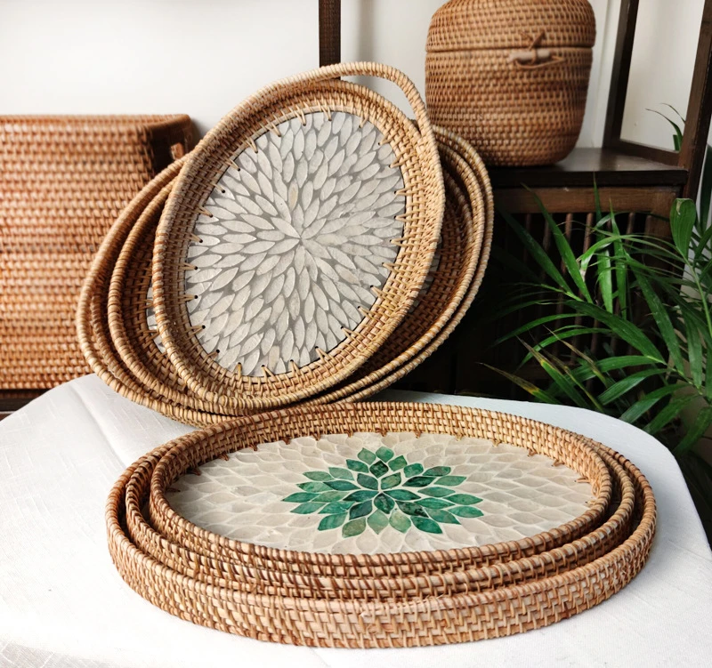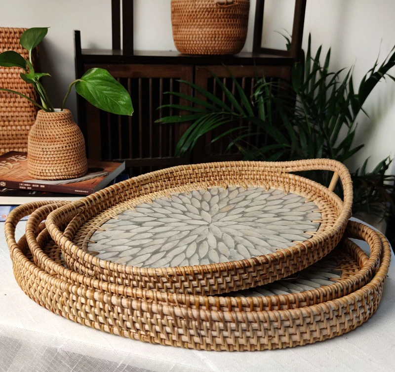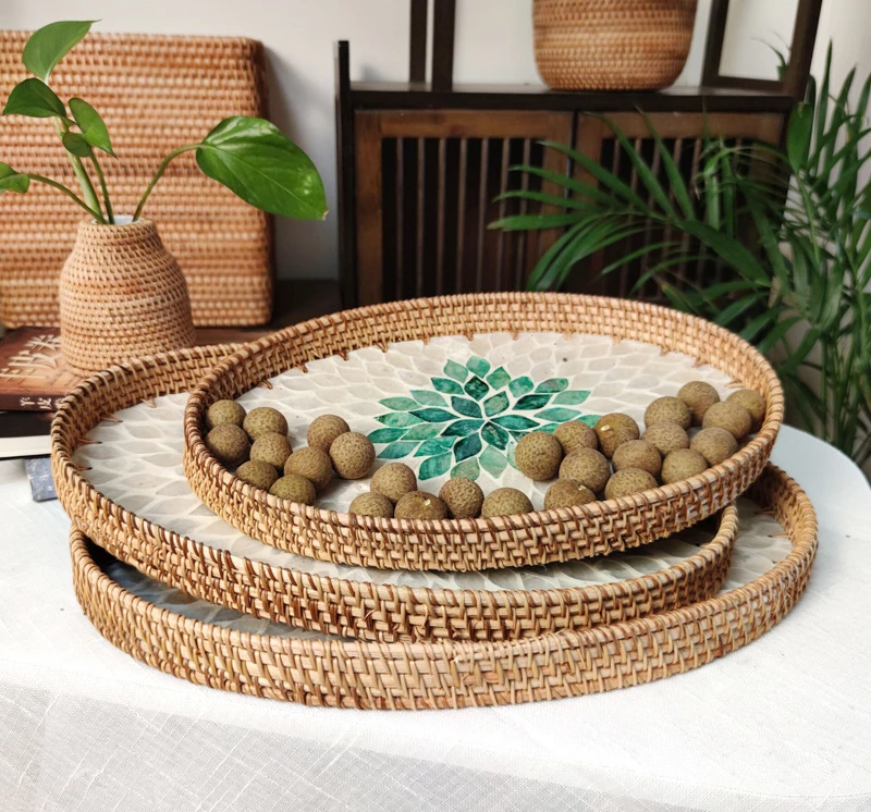 czHxDfWhHere you can buy Handmade Rattan Shell Basket Fruit Storage Breakfast Tray Organizer for Drinks Snack Coffee Bread Plate Household Woven Dishes with free delivery to your post office.
