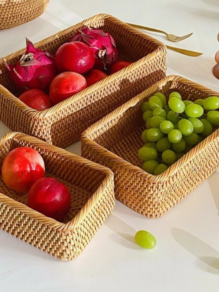 qcPPCnnxaeHere you can buy Handwoven Rectangular Rattan Wicker Basket Fruit Tea Snack Bread Picnic Cosmetic Storage Box Kitchen Supplies Household Tools with free delivery to your post office.