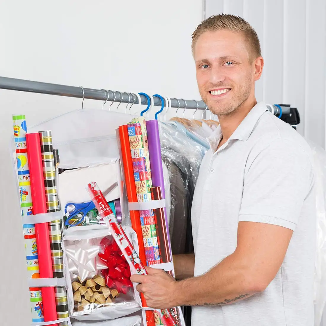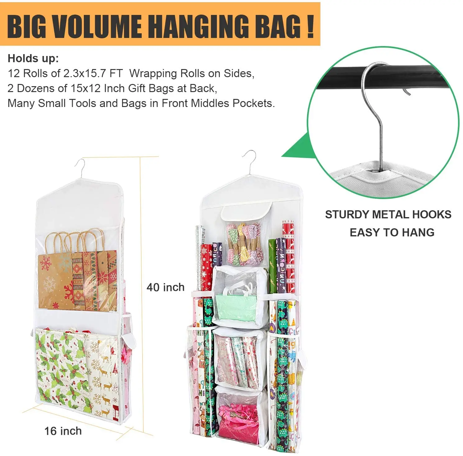 lfDfMokVHere you can buy Hanging Double Sided Wrapping Paper Storage Organizer Multiple Front And Back Pockets Wrap Gift Bags Bows Ribbons Storage Bag with free delivery to your post office.