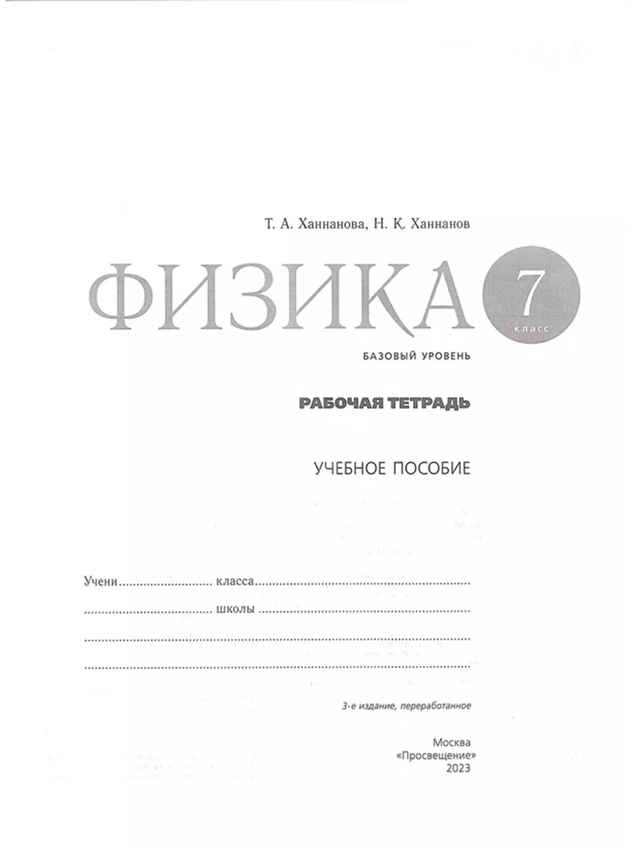 Ханнанова рабочая тетрадь по физике 7 класс