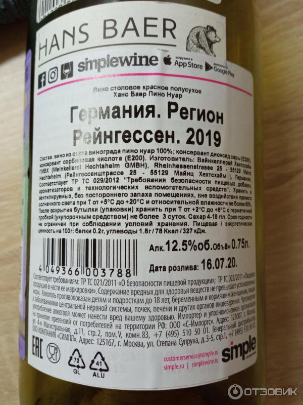 Hans baer pinot noir 168 фото