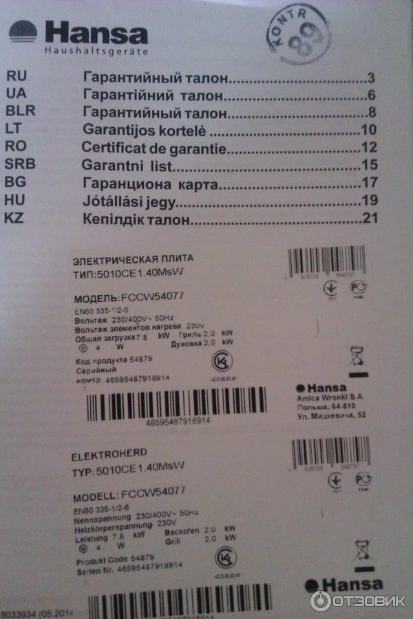 Hansa en60 110 фото