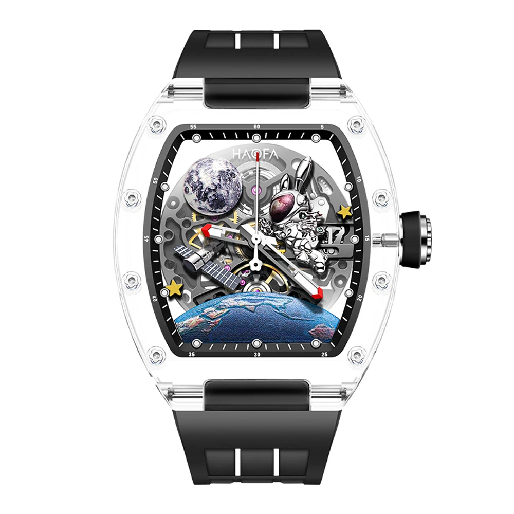 XBAjDZdijmHere you can buy Haofa 3D Interstellar Spaceship Mechanical Watch for Men Automatic Hollow Transparent Watch Luminous Moon Rabbit Men Watch 2320 with free delivery to your post office.