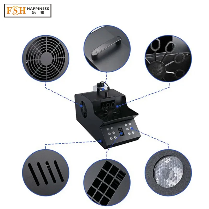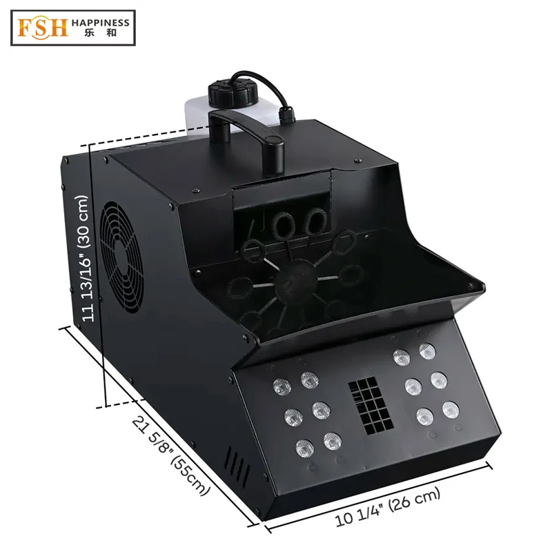 BRLjXwhUSrHere you can buy Happiness Double Wheel Bubble Smoke Machine LED Fog Bubble Machine with Remote DMX Control For Stage Party with free delivery to your post office.