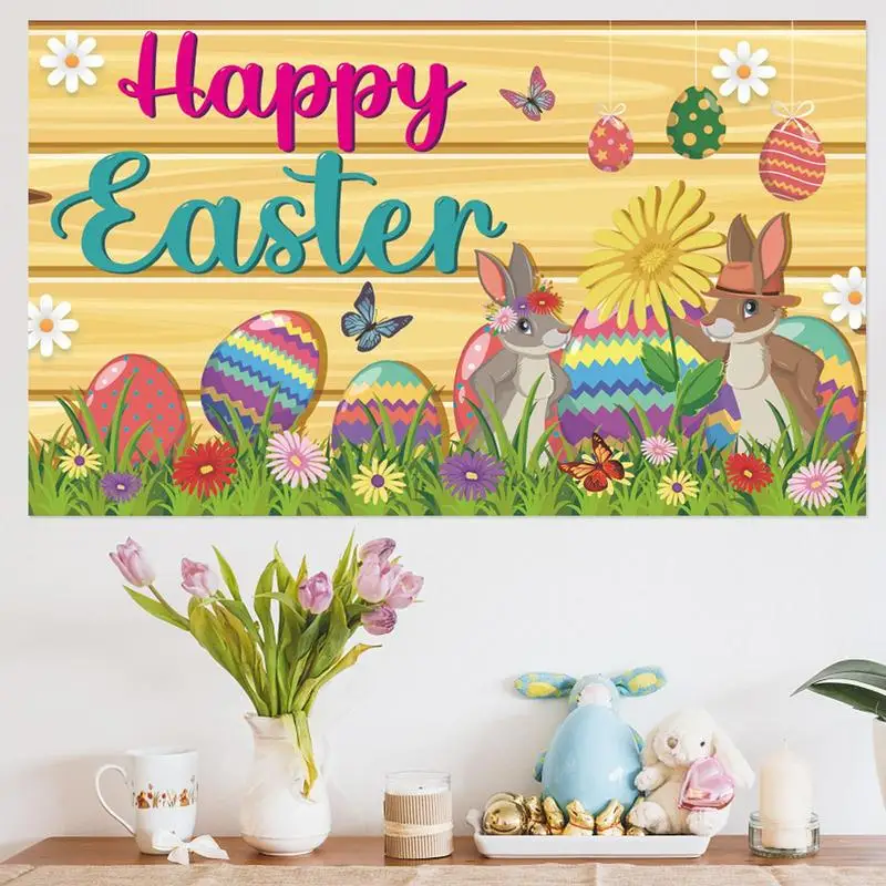 tXxlbOSPrtHere you can buy Happy Easter Banner 71x43in Easter Bunny Hanging Backdrop Banner Easter Lawn Sign Backdrop Banner For Spring Easter Decoration with free delivery to your post office.