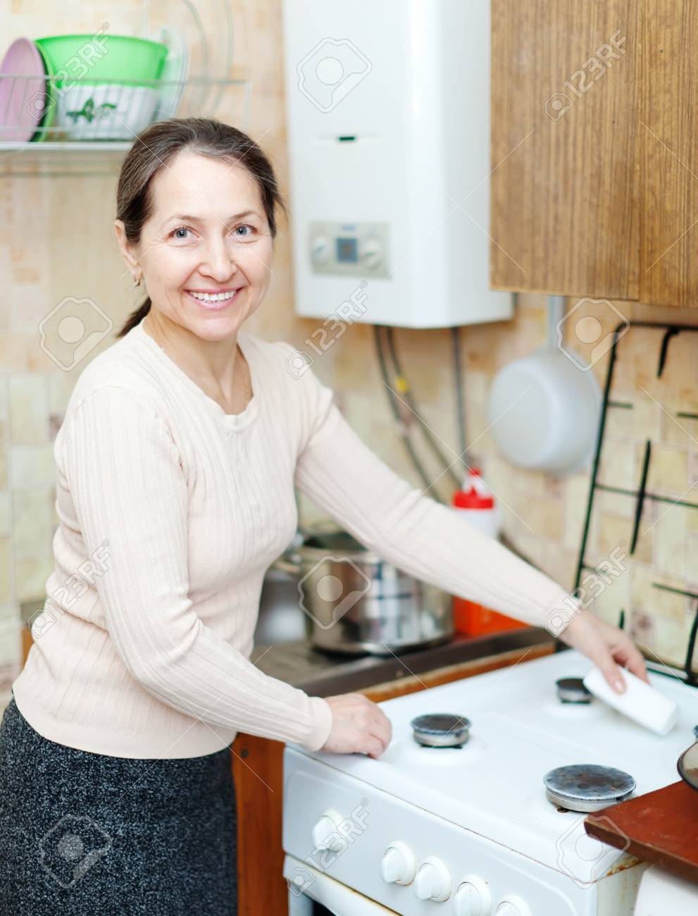 Happy mature housewives
