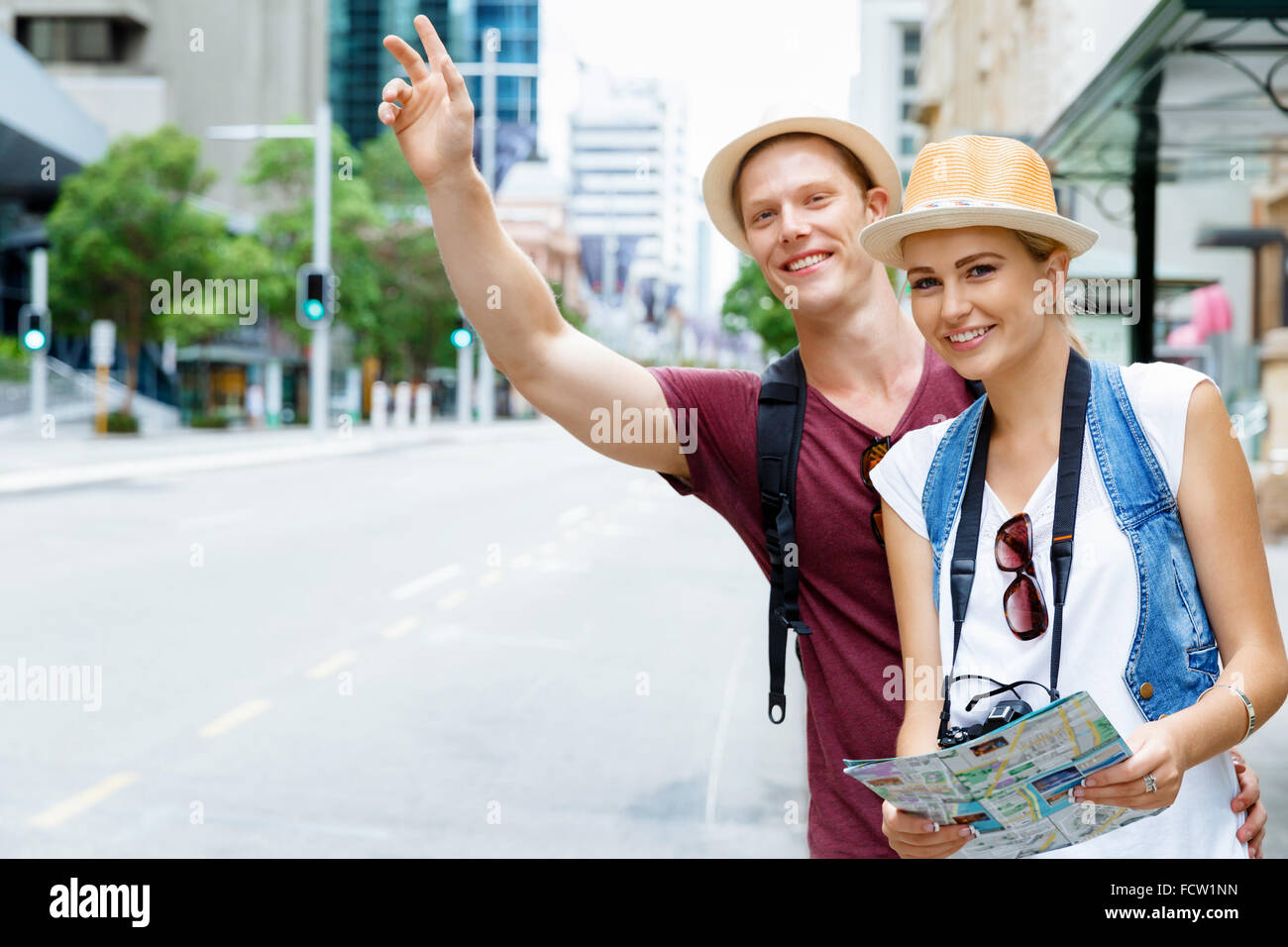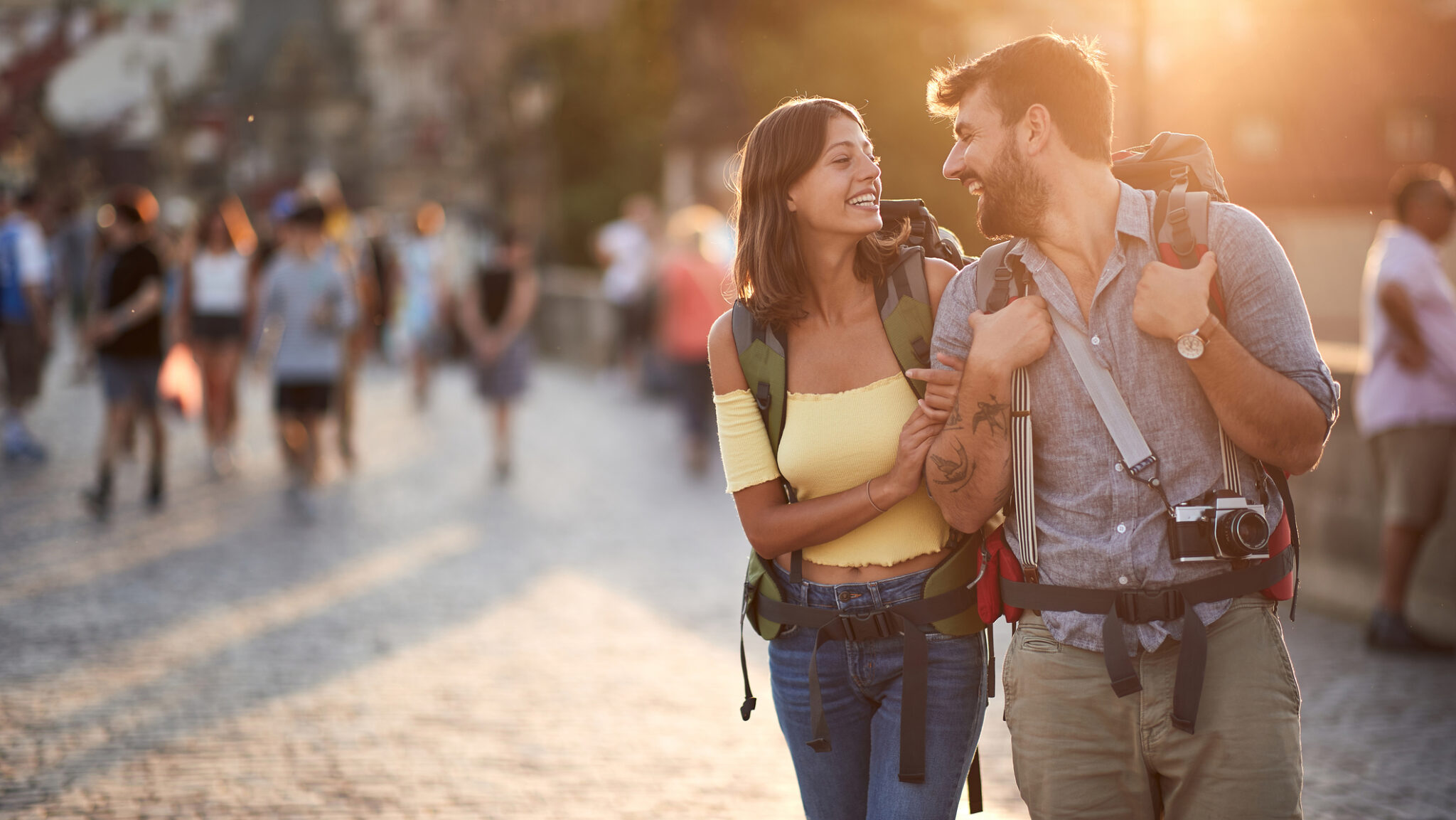 Happy tourists
