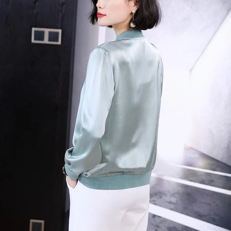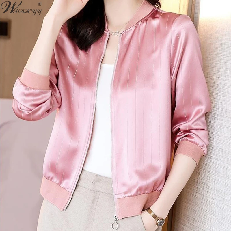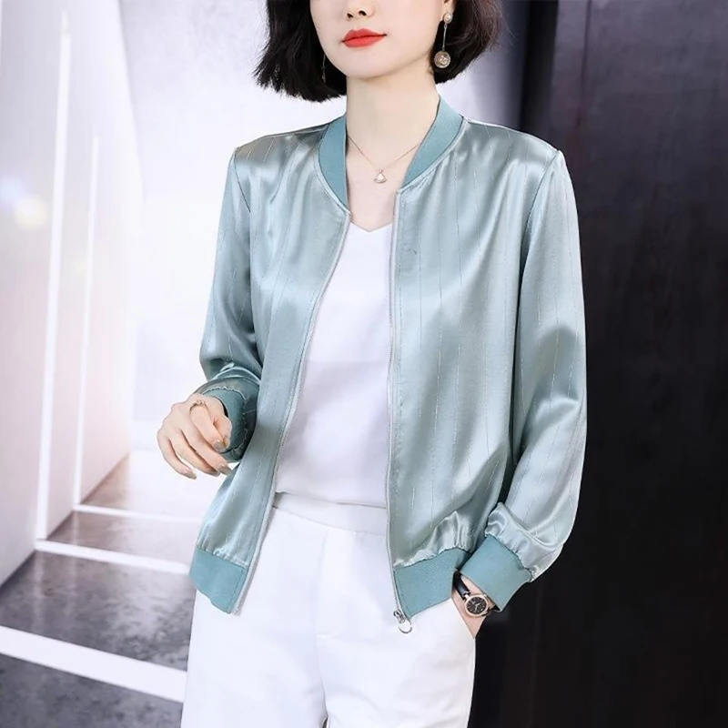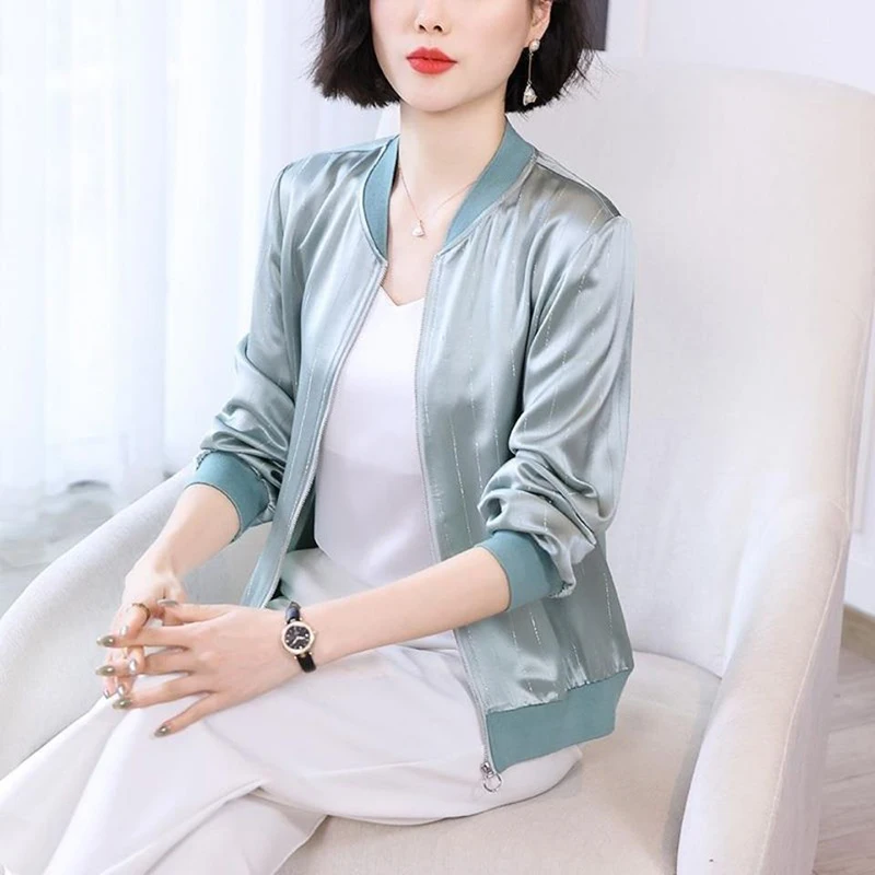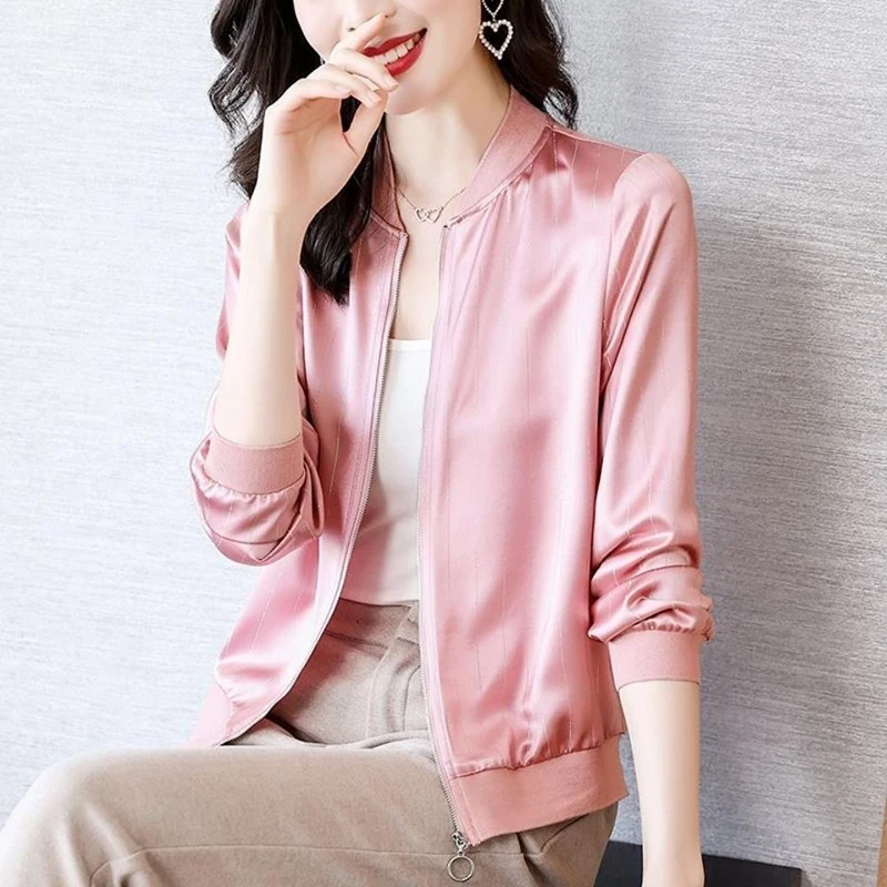 "Harajuku Fashion Women's Jacket Spring Autumn Thin Imitation Silk Bomber Outwear Solid Colors Basic Casual Short Zipper Up Coat" * Buy Now Just For 15$