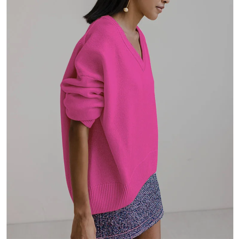 «Harajuku Winter Sweaters Women V-neck Loose Solid Color Knit Vintage Sweater Women 2022 Autumn Lazy Wind Mid-Length Pullover» по лучшей цене на рынке! Всего за 20$ (1900рублей)