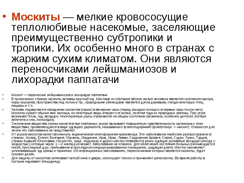 Характеристика москитов