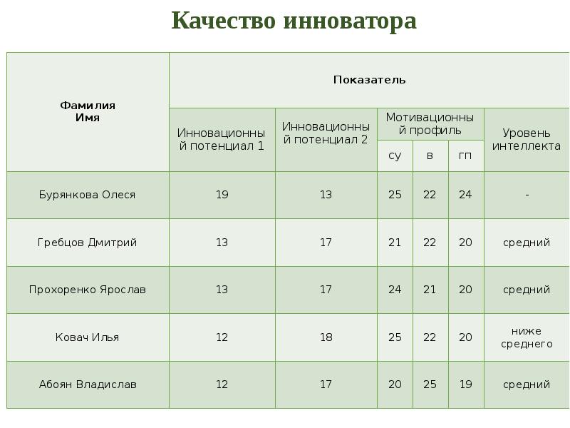 Характеристики инноватора