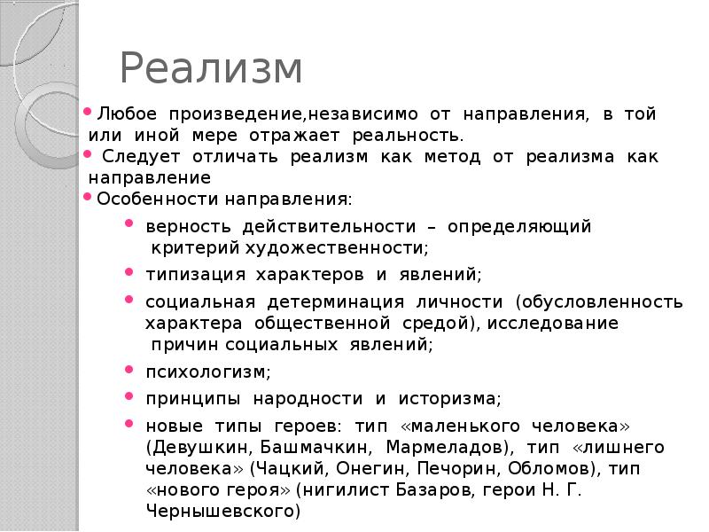 Характеристики реализма