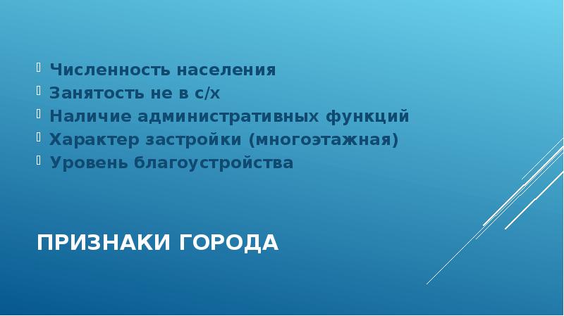 Характерные признаки города