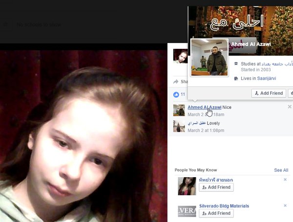 RACHAEL (Teenage Girl): The girl like gets in front of the guy and the guy is behind her.