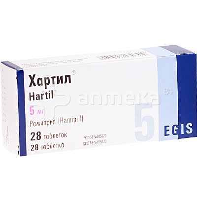 Хартил таблетки по 5 мг №28 (7х4) : інструкція + ціна в . . .
