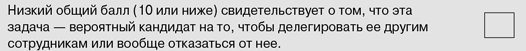 С помощью приведенной далее методики оценки проанализируйте ваши повседневные обязанности и определите, какие из них: а) не слишком важны для вас или вашей фирмы и б) относительно легко могут быть исключены, делегированы или отданы на аутсорсинг. Судя по результатам наших исследований, по меньшей мере четверть типичных обязанностей квалифицированного работника попадает в обе эти категории, поэтому вы сможете освободить до десяти часов в неделю для более важных дел. Участники нашего эксперимента обнаружили немало таких дел. Лотта Лайтинен, менеджер из If, быстро идентифицировала несколько совещаний и рутинных административных задач, от которых она легко могла отказаться. Шантану Кумар, генеральный директор небольшой технологической компании из Лондона, осознал, что он слишком много внимания уделяет деталям планирования проектов, а Винсент Брайант, менеджер GDF SUEZ Energy Services, сам удивился, обнаружив, сколько времени он тратит на сортировку документов.