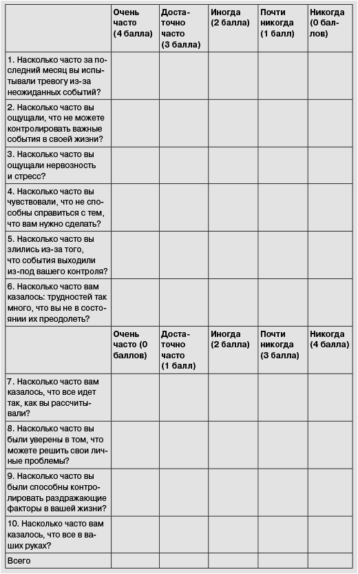 Учитывая эту взаимосвязь между стрессом и производительностью, вероятно, полезно отдавать себе отчет в том, какой уровень стресса вы испытываете на работе в настоящий момент. Если интересно, пройдите предложенный далее тест и оцените ваш уровень стресса. Тест представляет собой адаптацию широко используемой «шкалы субъективного стресса», созданной психологами Шелдоном Коэном, Томом Камарком и Робин Мермельштайн.