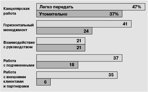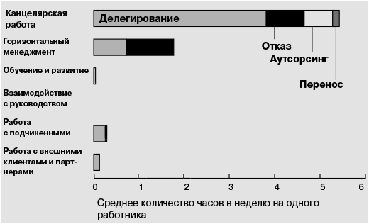 Наши исследования показывают, что канцелярская работа и «горизонтальный менеджмент» занимают в среднем две трети рабочего времени…