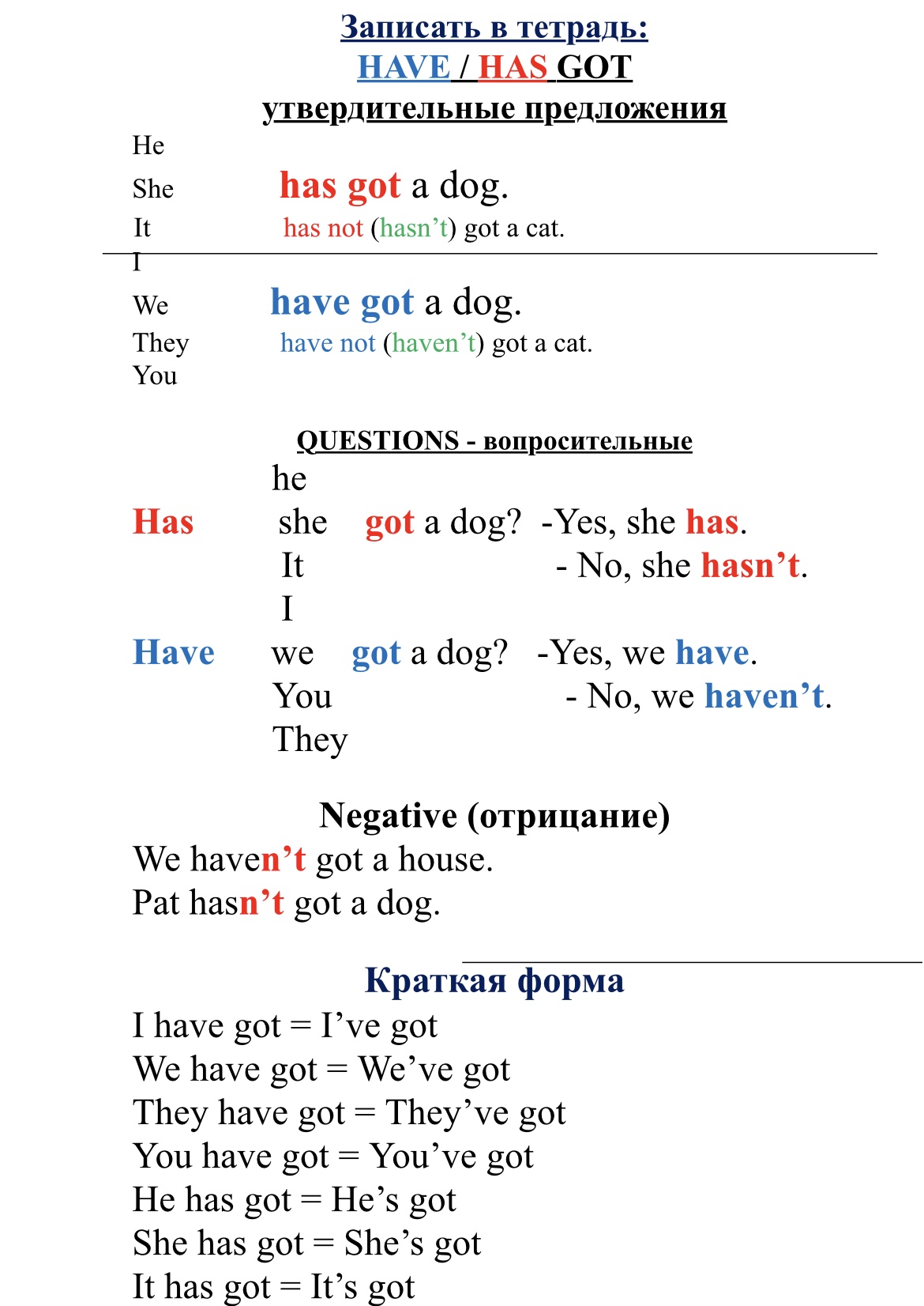 Has вопросительные предложения