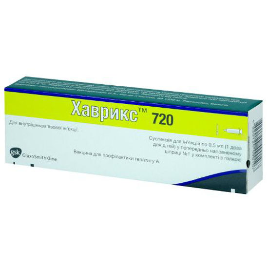 Хаврикс 720 вакцина для детей от гепатита А, в шприце по 0,5 мл, 1 шт . купить по низкой цене в Киеве, Харькове, Одессе и в Украине Доставка лекарств домой ️ Наличие в аптеках Украины . 🧐 Вы сможете забрать Хаврикс 720 вакцина . . .