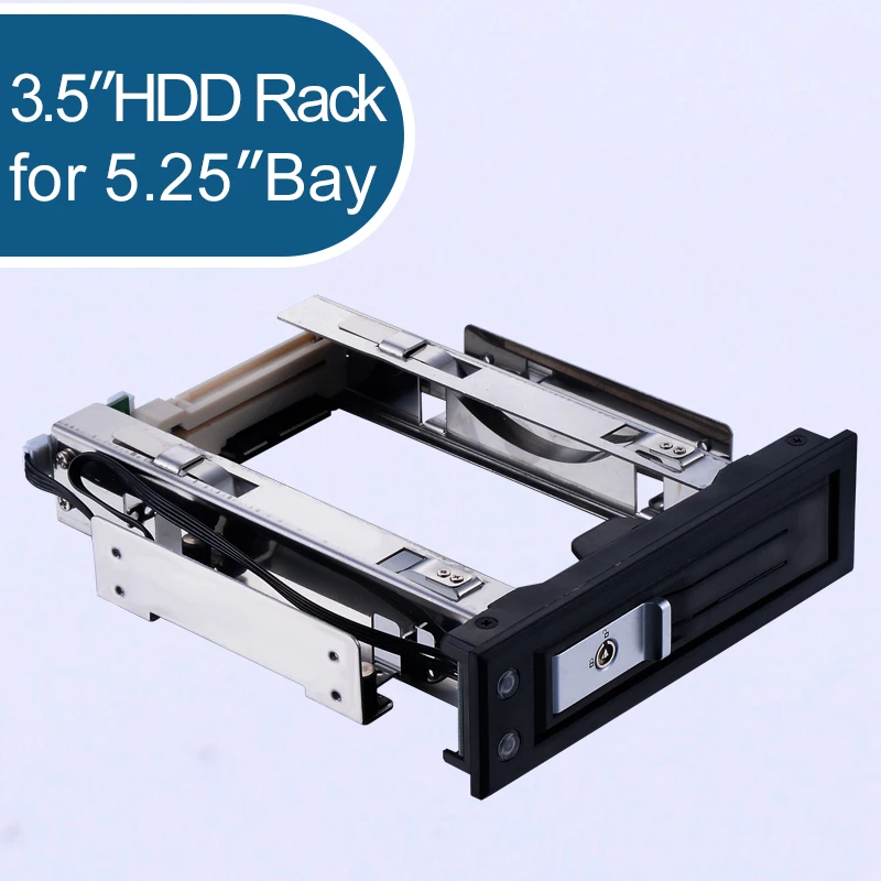 Rack portatile trayless funzione hot-swap da 5,25" per dischi rigidi da 3,5" E' possibile gestire facilmente qualsiasi Hard Disk SATA da 3,5" da qualsiasi computer dotato di alloggiamento da 5,25"