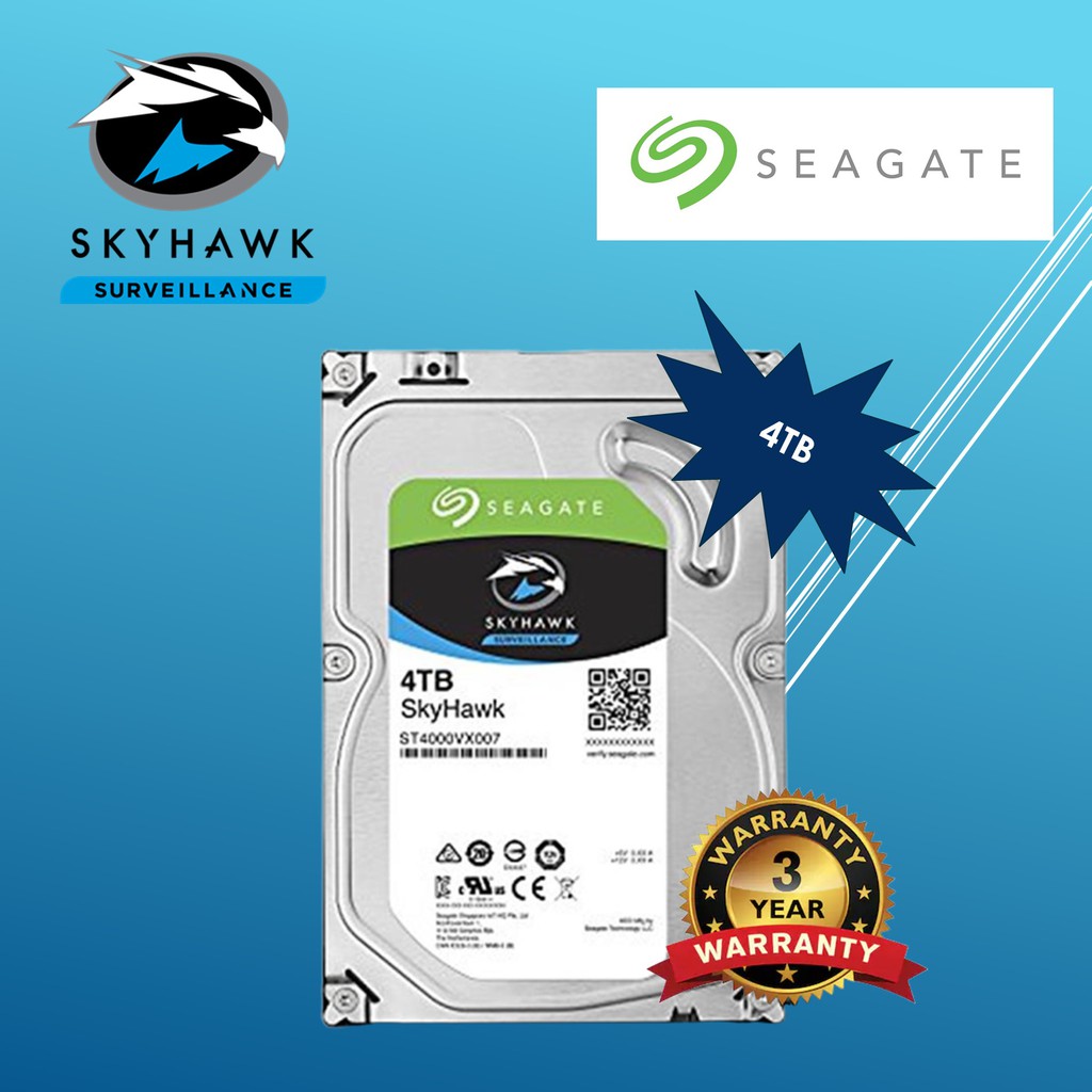 Seagate SkyHawk ST4000VX007 4TB 3 .5in 6Gbps Serial ATA / SATA Surveillance HDD - Brand New . Seagate SkyHawk ST4000VX007 4TB / 4000GB 3 .5" 6 .0 Gb/s Serial Attached Technology Attachment Surveillance Hard Disk Drive - Brand New . SKYHAWK SURVEILLANCE . Smart . Safe . Secure . Seagate Surveillance-Optimized Storage
