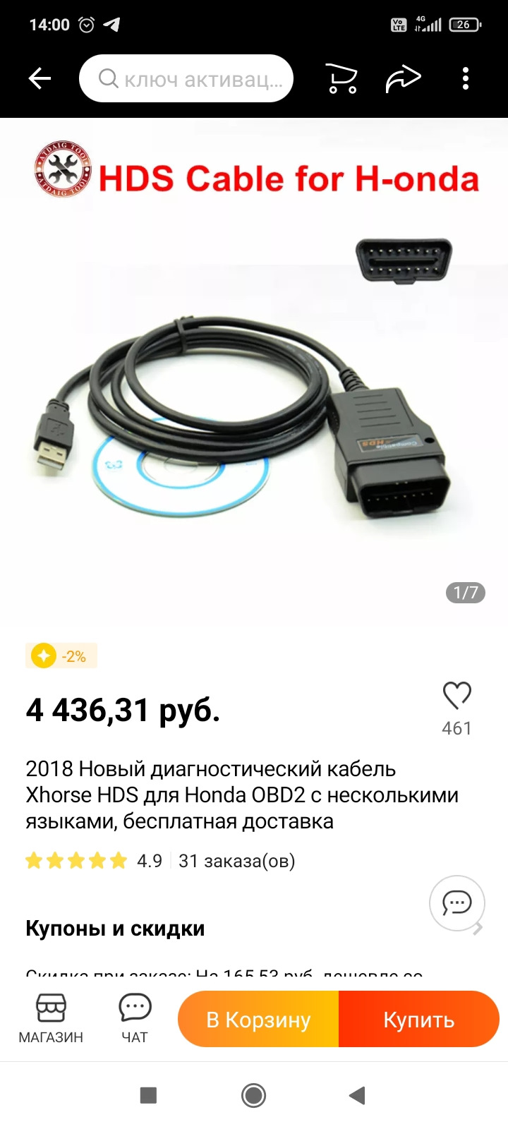 Hds кабель для honda