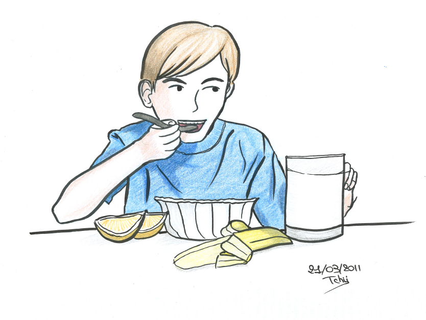 He never eats breakfast