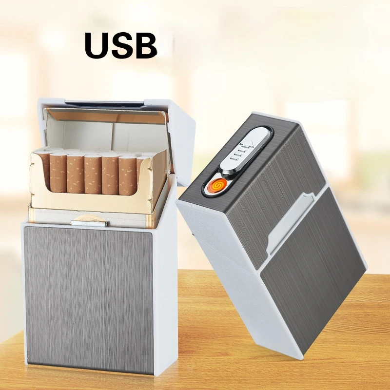 WOKtDlTDHHere you can buy Heating Wire Lighter Rechargeable Cigarette Case 20pcs Conventional Cigarette Case Metal Drawing High-end Rechargeable Lighter with free delivery to your post office.
