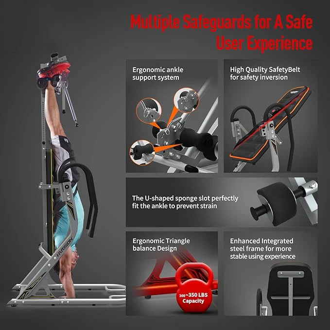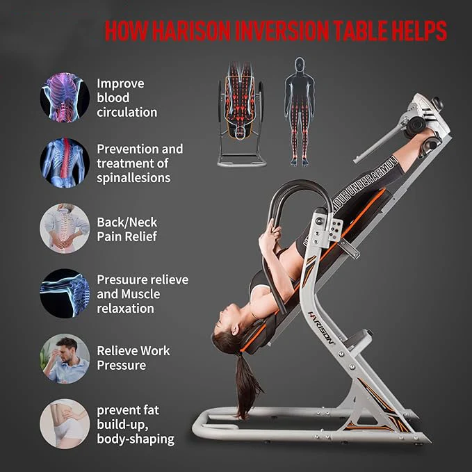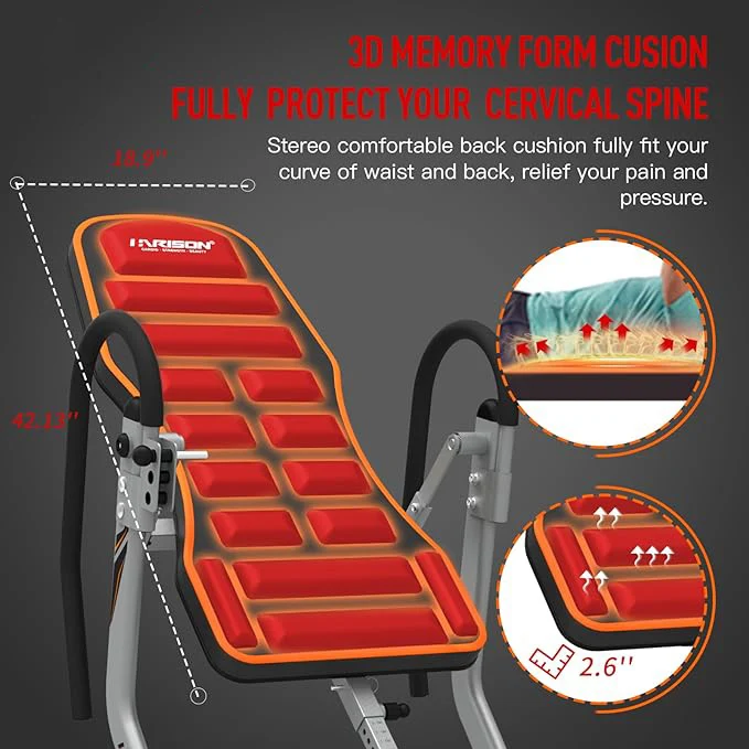 WVIrtFqSDHere you can buy Heavy Duty Inversion Table for Back Pain Relief with 3D Memory Foam, Back Inversion Table with 180 Degree Full Inversion with free delivery to your post office.