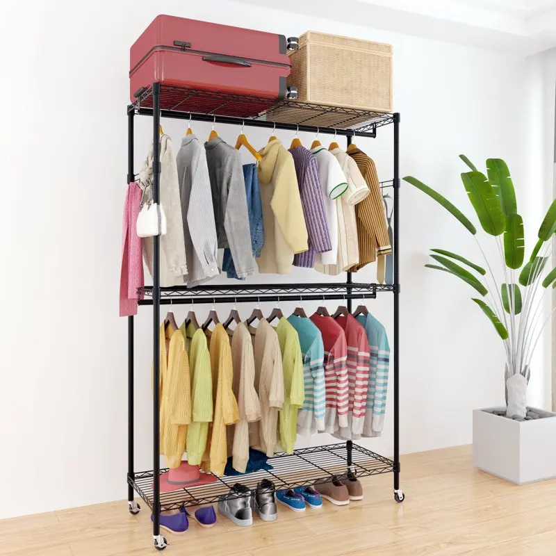 KRabfWJTCZHere you can buy Heavy Duty Rolling Garment Rack Portable Closet System Double Rod Clothes Storage Rack Freestanding Closet Organizer Unit with A with free delivery to your post office.