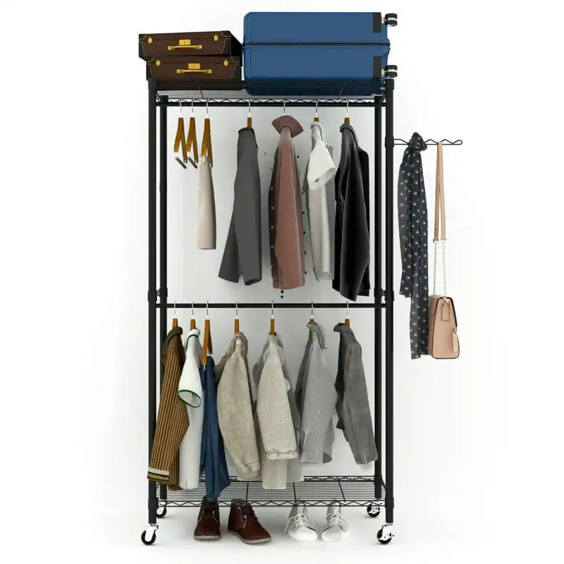 "Heavy Duty Rolling Garment Rack Portable Double Hanging Rod Clothing Rack with Adjustable Shelves 2-Tier Closet Storage Organize" * Buy Now With Free Shipping Just For $61