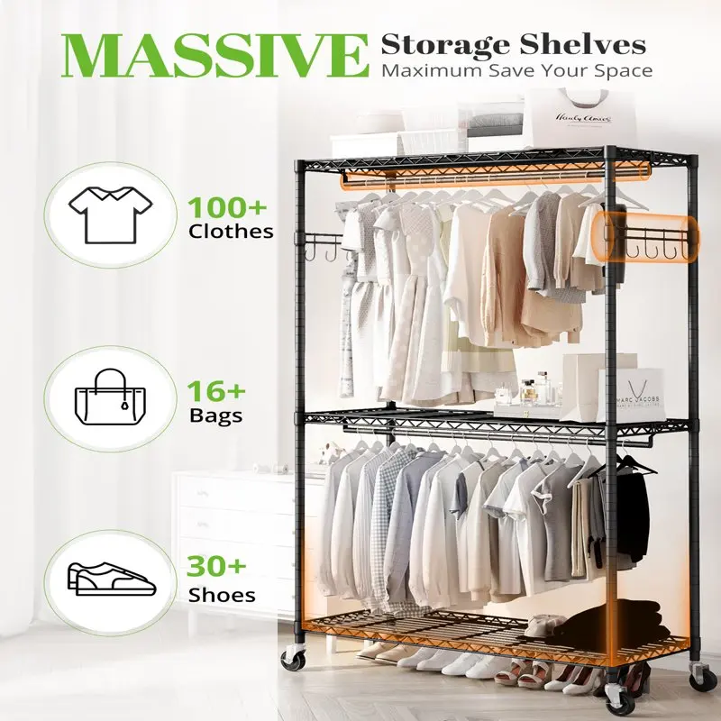 "Heavy Duty Wire Garment Rack Clothes Rack with Shelves and Double Rods, Rolling Clothing Rack for Hanging Clothes, Portable Free" * Buy Now With Free Shipping Just For $83