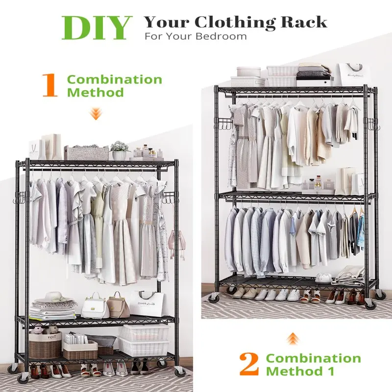 FggQEMhkHere you can buy Heavy Duty Wire Garment Rack Clothes Rack with Shelves and Double Rods, Rolling Clothing Rack for Hanging Clothes, Portable Free with free delivery to your post office.